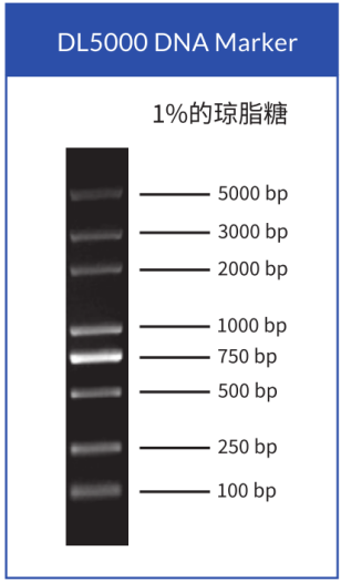 5000bp,3000bp,2000bp,1000bp,750bp,500bp,250bp,100bp共8條雙鏈DNA組成